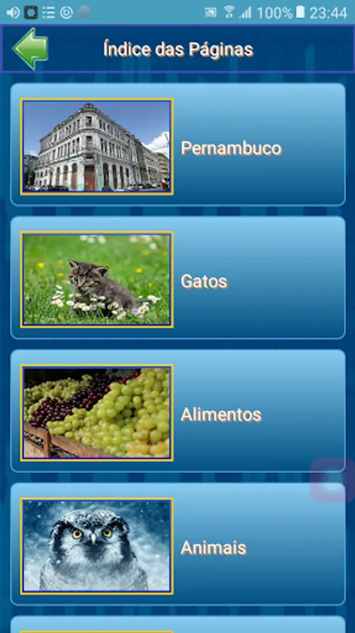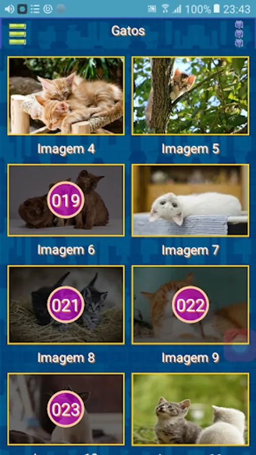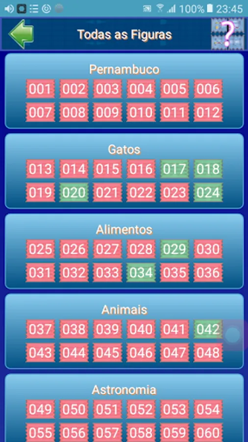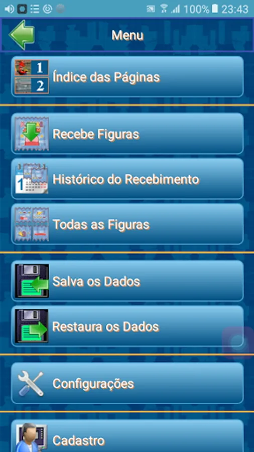 Emulates a sticker album. It consists of 20 pages with a total of 240 figures. Each page has its theme and its pictures related to this theme. Each page consists of 12 figures.