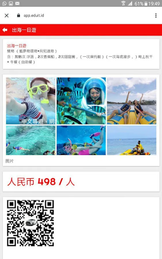 Includes: countless times snorkeling, 2 banana boats, 2 doughnuts, (one motorboat) (one undersea walk), island swing + lunch (buffet)