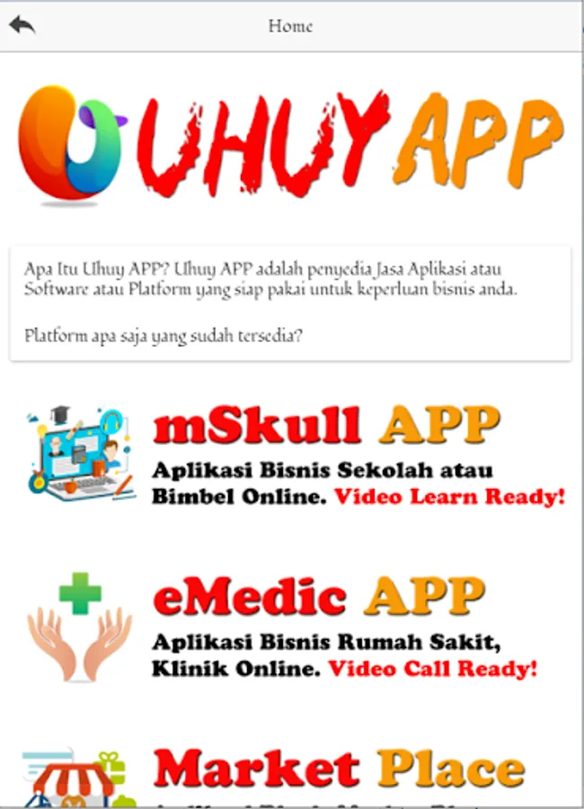 What is Uhuy APP? Uhuy APP is a provider of Application Services or Software or Platform that is ready to use for your business needs.