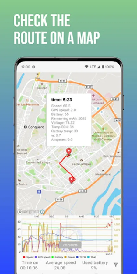 - Automatic creation of graphs with the scooter info as a function of time (used battery percentage, max speed, etc.);