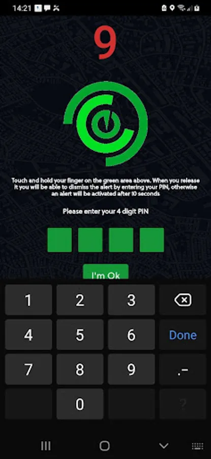 This feature allows you to keep your finger on the Deadman trigger icon on your phone and if you are in danger and you remove your finger from the trigger button, a 10-second countdown will begin. Should you not enter your unique code Eyerus, will automatically escalate to the user subscribed alert mode.