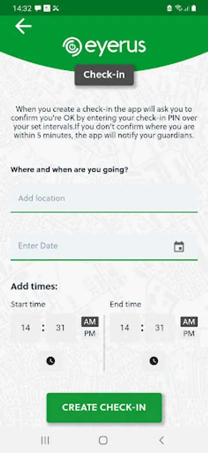 You can determine how long you want Eyerus to keep watch over you. If you do not check-in within a predetermined time frame, Eyerus will then alert your guardians, in turn giving your guardians remote control to trigger the blue alert mode if you are unresponsive.