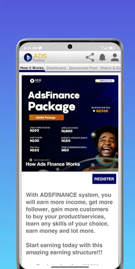 With Ads Finance system, you will earn more income, get more followers, gain more customers to buy your products/services, learn any skills of your choice, earn money and lots more.