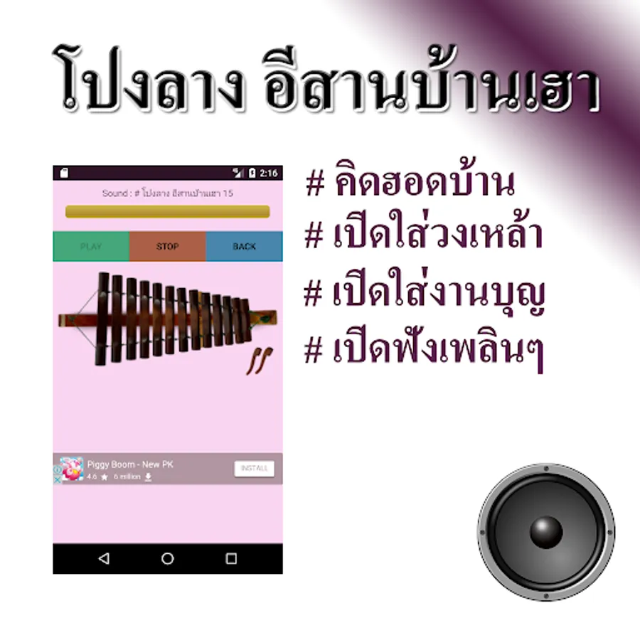 Pong Lang is a music in the northeast region of Thailand. That has fun rhythms. Whoever has already heard Will definitely like and dance along One poop band consists of various musical instruments, including harps, canotes, drums, bass jars and many more. This app will definitely please you.