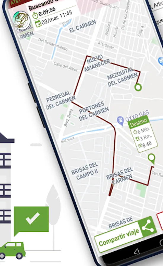 Open the application >> Set your destination >> Check rate >> Press the button to start.