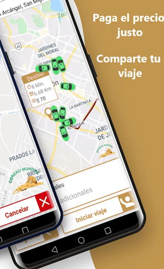 Open the application >> Set your destination >> Check rate >> Press the button to start.