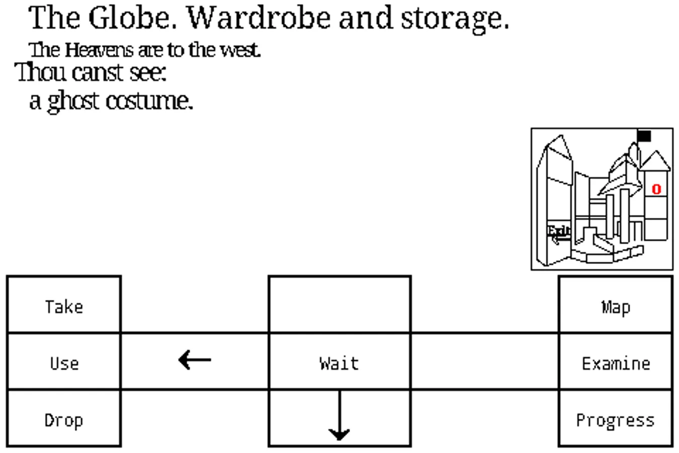 London, 1605. William Shakespeare has writer's block. The plague hath closed theatres the past year and caused cashflow problems. And he's lost his quill! Play the part of William Shakespeare and help him to find inspiration to write a new play. . . Walk around London. help out with the day-to-day business of the Globe theatre! Try to pay the debt owed to Thom the Rogue! And last not least, try to find inspiration for writing a new play!