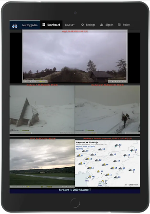 "Far Sight" allows you to assemble sets of layouts with grids displaying webcams, web sites, and other information that can be refreshed in time intervals. Perfect for monitoring road routes, your house surroundings, or weather conditions anywhere in the World. Video surveillance or real-time stock information from several sources, mountain weather conditions, or present VFR flight conditions along the route.