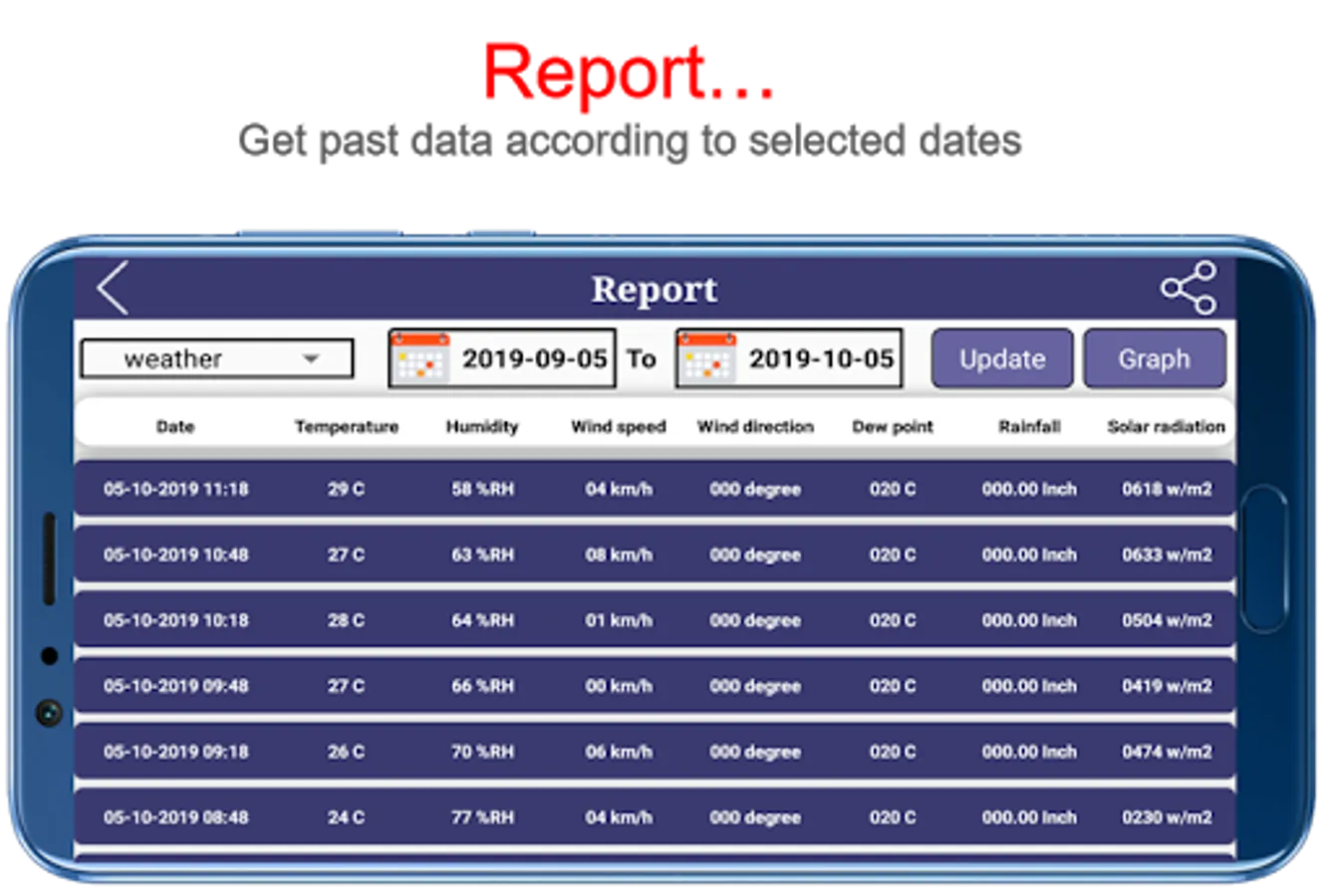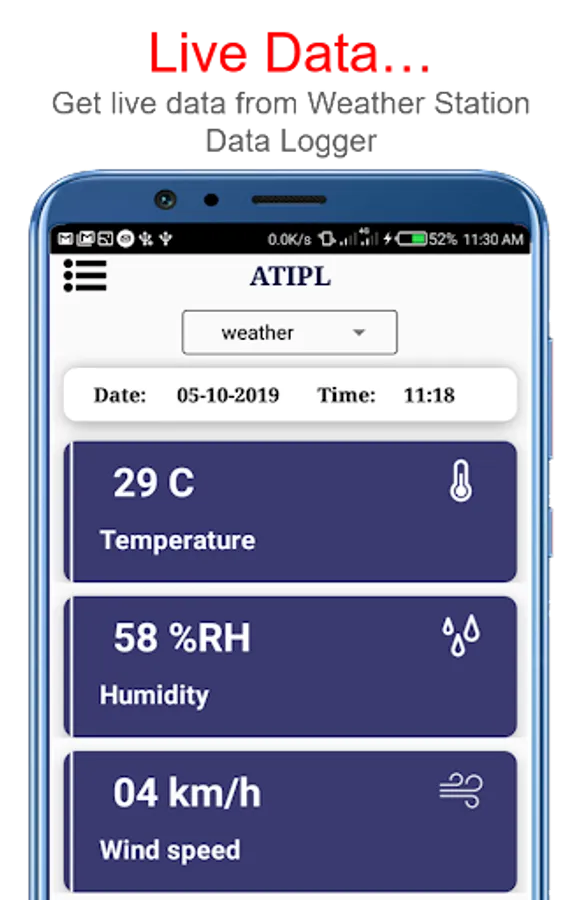 Weather station data logger mobile application for accurate display of data received from automatic weather station.