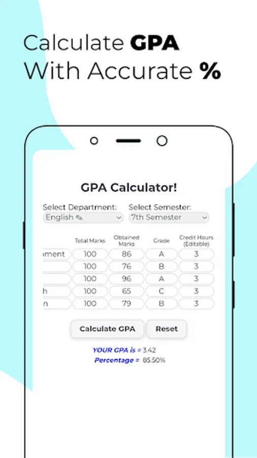Easy GPA Calculator is a straightforward yet innovative tool that simplifies the calculation process of GPA and cGPA. This user-friendly app saves you time by automating these time-consuming tasks. You just need to select your department and semester and input your marks, and our tool will fill in all the necessary details for you and instantly provide accurate results. Through its intuitive UI, Easy GPA Calculator provides a concise yet comprehensive approach to GPA management, saving time and improving academic planning.