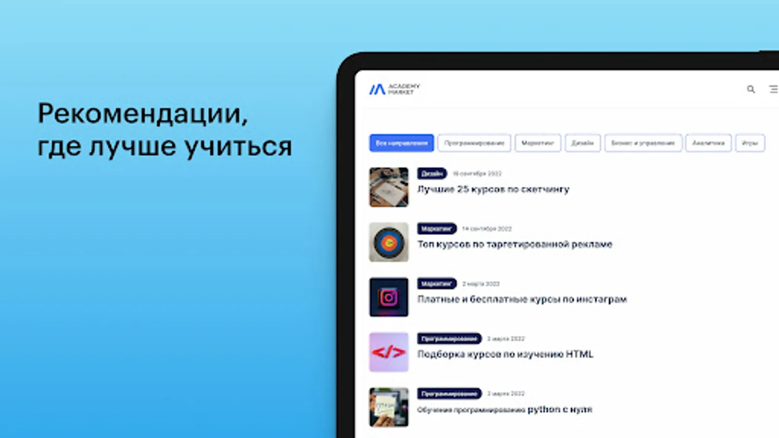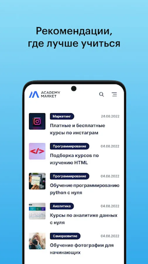 If you have long dreamed of learning a new profession, it's time to get acquainted! In the Academy Market you can find courses in popular and popular areas.