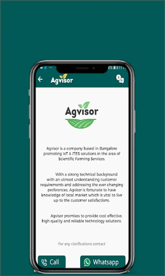 Agvisor is a company based in Bangalore promoting IoT & ITES solutions in the area of Scientific Farming Services. With a strong technical background with an utmost understanding customer requirements and addressing the ever changing preferences, Agvisor is fortunate to have knowledge of local market which is vital to live up to the customer satisfactions. Agvisor promises to provide cost effective, high quality and reliable technology solutions.