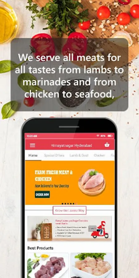 We operate fresh meat ordering site based out in Hyderabad. we deliver fresh and hygienic meat of best quality at fair prices. Lazeez Eat is the Hyderabad's only online store for delivering fresh chicken, mutton and sea food for customers of Hyderabad.