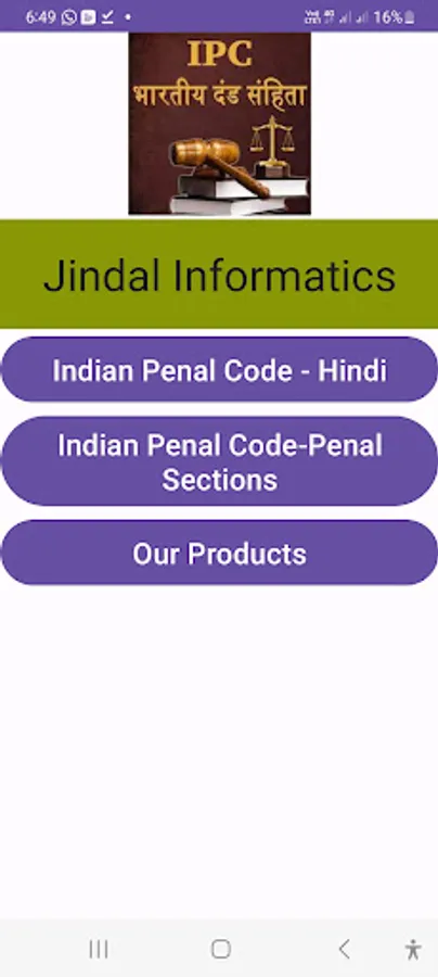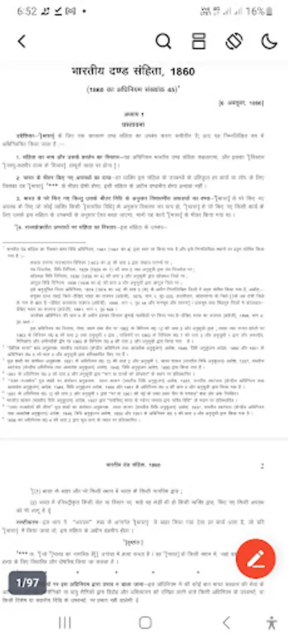 Indian Penal Code - Hindi. A Bare Act. The app is the outcome of our hard work to bring this Bare Act in Hindi with Search Facility that too in a very small size app so that a large number of user can benefit from it. Give your suggestions and 5 * ranking if you like it and tell others. If you don't like, please tell us to improve.