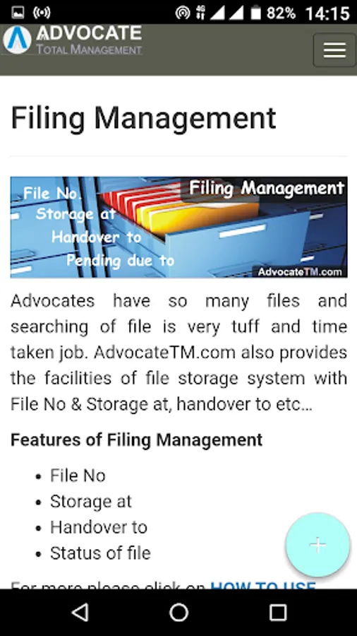 Advocates have so many files and searching of file is very tuff and time taken job. AdvocateTM also provides the facilities of file storage system with File No & Storage at, handover to etc..
