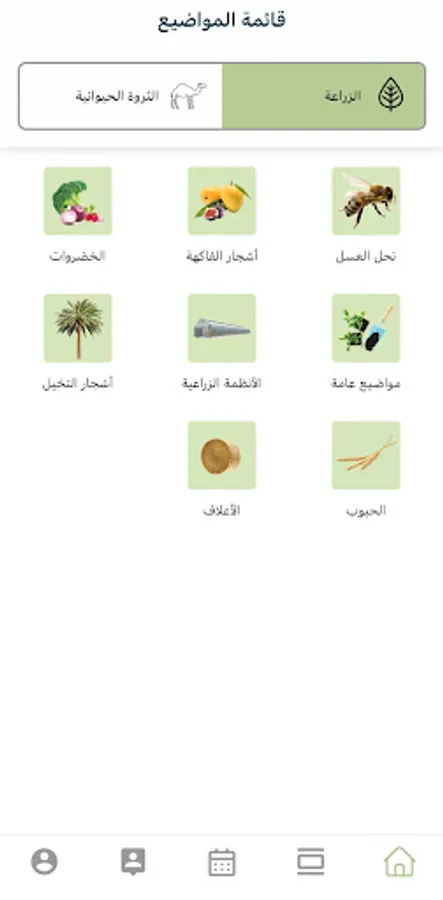 حمل تطبيق الإرشاد الزراعي الآن، واستفد من المعلومات القيمة لجميع المواضيع الزراعية في مجال النخيل، الفاكهة، الحبوب، الأعلاف، الأنظمة الزراعية، ومواضيع الثروة الحيوانية كتربية وانتاج (الإبل، الأبقار، الأغنام، الدواجن)