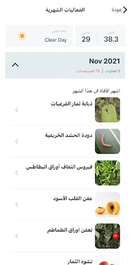 2. التعرف على الآفات والأمراض: يمكنك الآن من خلال التطبيق التعرف على الآفات والأمراض النباتية آليا، ومن ثم معرفة طرق مكافحتها.