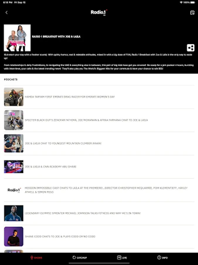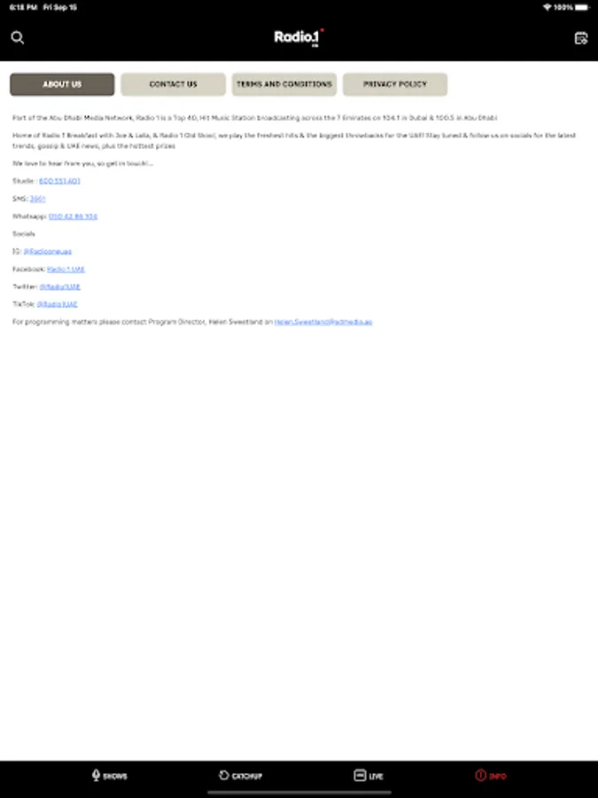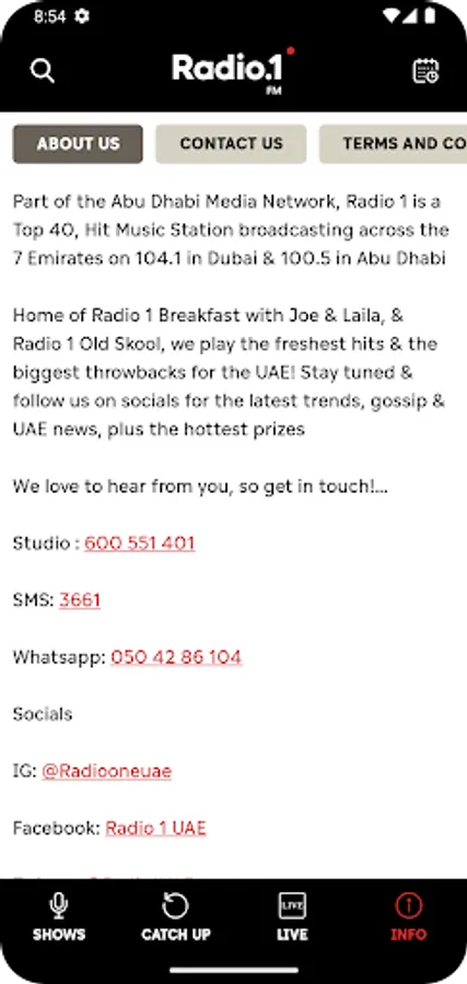 Part of the Abu Dhabi Media Network & Home of Radio 1 Breakfast with Dane & Chiara, & Radio 1 Old Skool, we play the freshest hits & the biggest throwbacks across the UAE!