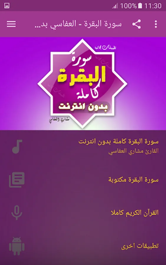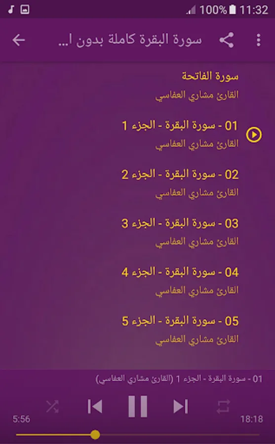 Surah Al-Baqarah complete with the voice of Sheikh Mishary Al-Afasy offline