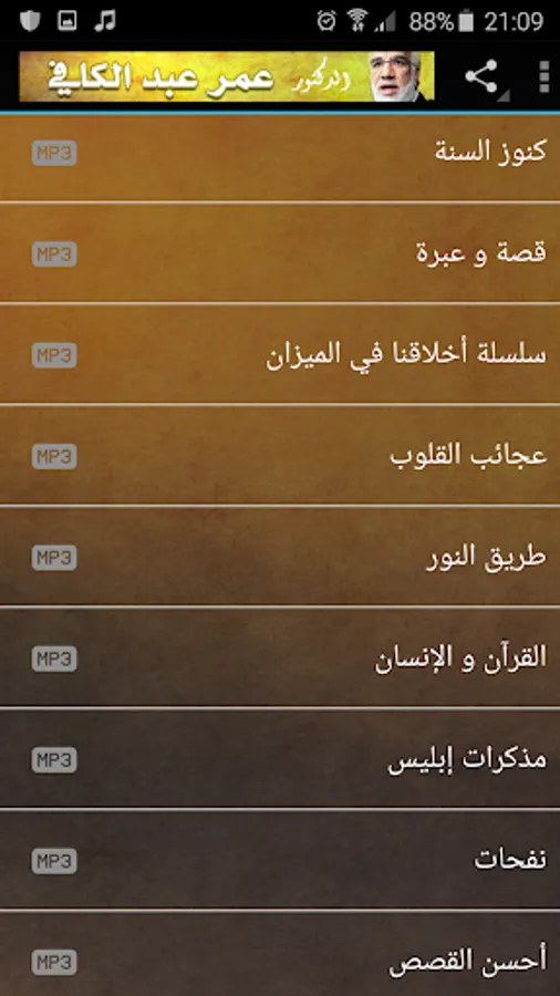 Speeches and lectures with the voice of Sheikh Omar Abdel Kafi, with high sound quality