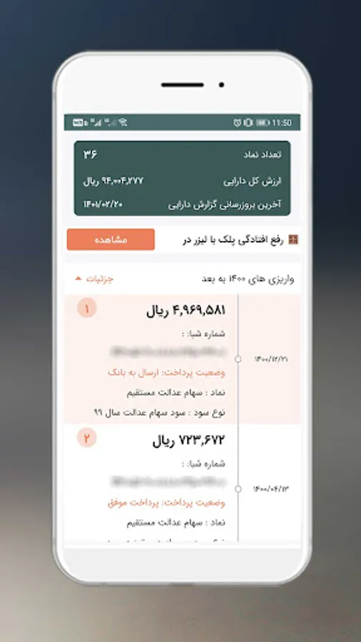 در هر یک از این بخشها تمامی اطلاعات ثبت شده در سامانه سهام عدالت برای شما نمایش داده میشود. اطلاعات در هر بخش به شرح زیر است:
