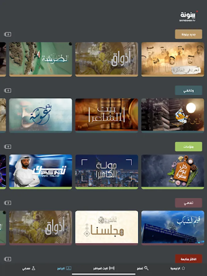 Baynounah TV is an Emirati TV channel with a mission to reflect the daily lives of the Emirati community. A pioneer in broadcasting national and local heritage, the channel’s diverse programming touches on social awareness, health, heritage and cultural, and religious topics.