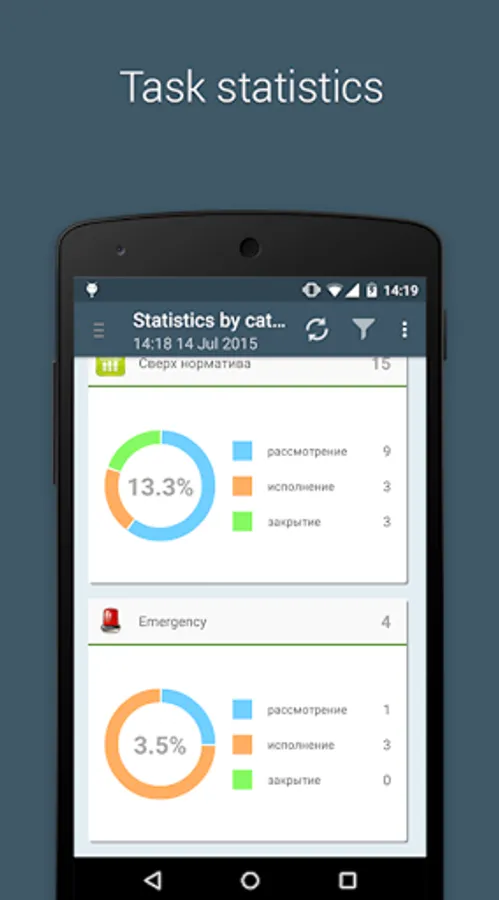 Tasks. The mobile workers receive the tasks through the program. The dispatcher sends the tasks and monitors the work process. Prompt task setting increases the mobile team efficiency.