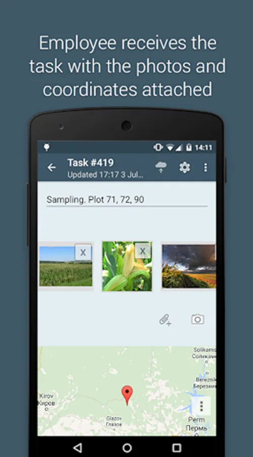 Data collection in the real time mode. The workers send photos and video from the work scene to the dispatcher. The files are georeferenced and show where the shot was made.