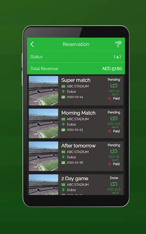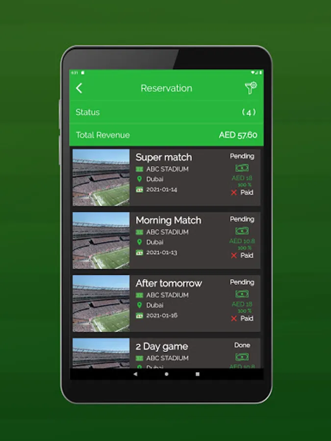 The applications are designed for both the owners and users, one for owners where they can add their own stadium or field and the other app is for the users where they can reach and book the stadium they want.