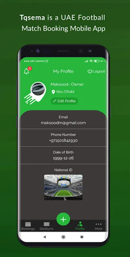 Tqsema App gives stadium owners a unique experience to present their stadiums to the players who wishes to reserve a suitable stadium. The application gives the owners a special space to display their owned stadiums and can add specifications of each stadium and a lot of wonderful features.