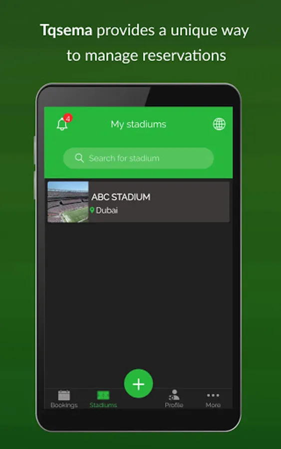 Tqsema App is designed for stadium owners to manage everything related to the stadiums in an easy way that saves time and effort and through which it is easy to follow up reservations and communicate with users/tenants.