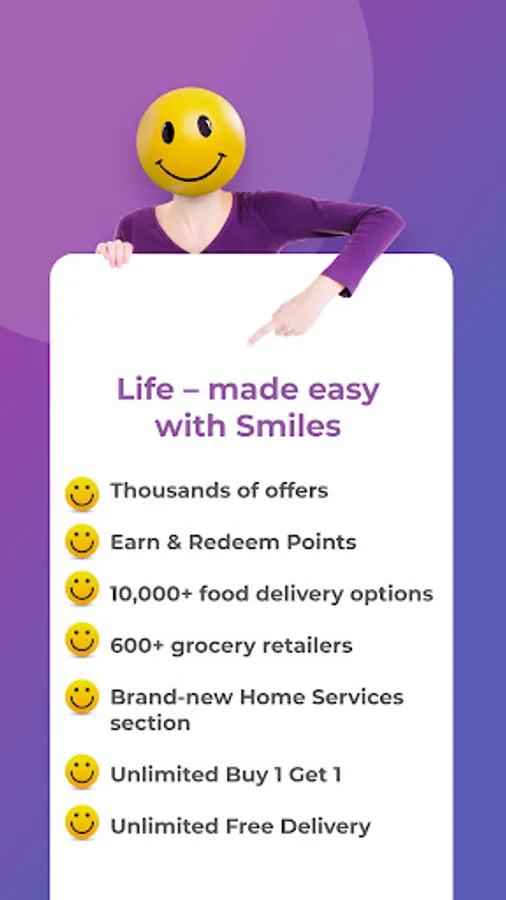 What’s the deal? With Smiles, you can “level-up” your lifestyle in UAE without breaking your bank. Smiles is all about deals, discounts, and offers - every day of the week and every hour of your day. Smiles gives you Buy 1 Get 1 free from 3000+ restaurants, cafes, and theme parks across UAE, 50% off on movie tickets, cashback (as Smiles points) for your daily shopping needs and much more.