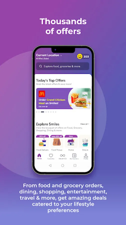 If you are living in UAE or simply visiting, Smiles is the only App you need every day for deals and savings – be it Dining, Grocery, Shopping, Cinema, Theme parks, Travel, Wellness. Smiles is used by over 1.6 million households in UAE already - and our savings tracker shows that the users have saved 100’s of millions. What’s more, Smiles gives you a special surprise gift every single day, personalized to your needs.