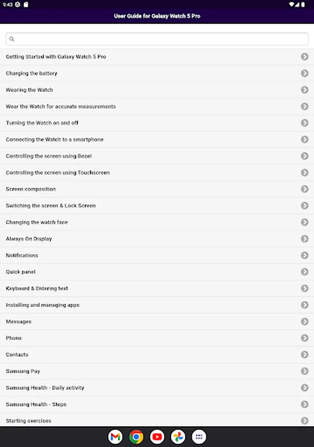 User guide for Galaxy Watch 5 Pro with lots of tips and tricks to get the most out of your Galaxy Smart Watch . Watch 5 Pro is one of the best smart watch you can use. This watch 5 pro includes accelerometer, barometer, gyro sensor, geomagnetic sensor, and light sensor etc. Learn how to master of these sensor and how to measure your heart rate, stress rate, ECG etc. This watch provide advanced fitness and wellbeing for you daily life. This app includes: