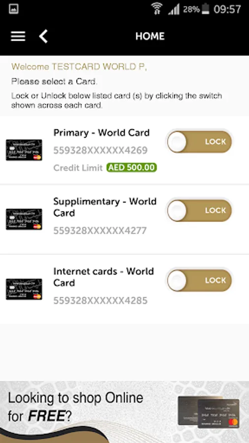 - Lock/unlock your Cards instantly