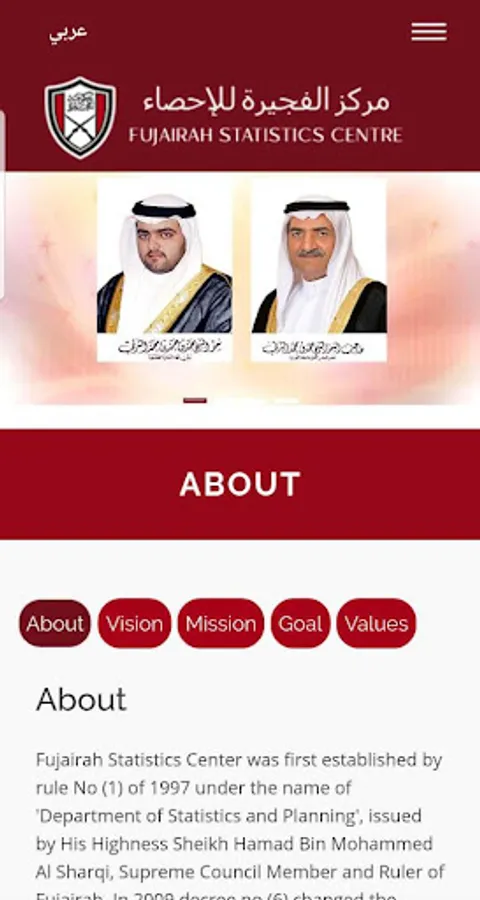 The Fujairah Statistics Center at the Ruler's Court was established in the Government of Fujairah in accordance with Resolution No. (1) for the year 1997 issued by His Highness Sheikh Hamad bin Mohammed Al Sharqi, member of the Supreme Council and Ruler of Fujairah, under the name of "Statistics and Planning Department".