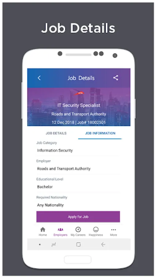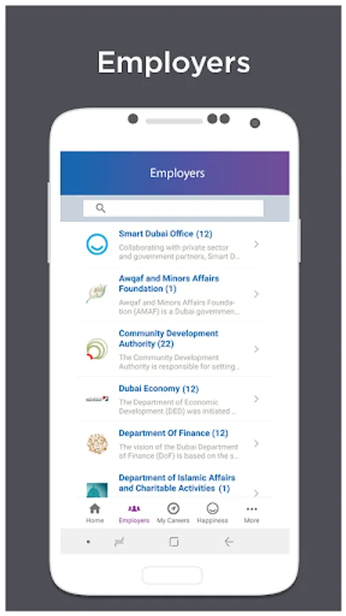 "Dubai Careers" / "وظائف دبي" is an innovative method developed by Smart Dubai Government Establishment, the technology arm of Smart Dubai, a city-wide initiative to transform Dubai into the world's smartest and happiest city in the world, for connecting job seekers of all categories anywhere with Dubai government entities.