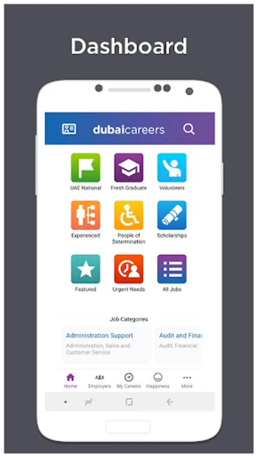 This centralized portal has been designed to provide a smart mechanism to deal with employment applications. If you are interested and looking for a dream job, we encourage you to register in "Dubai Careers" because it is the most appropriate channel that gives you access to the world of amazing jobs with incentives, bonuses, job security and high-level work environment. These jobs allow you the opportunity to innovate and be creative in your career in a healthy and up-to-date manner, enabling you to develop your skills and play a vital role for Dubai to be the smartest and happiest city on earth.