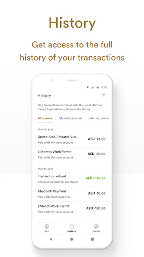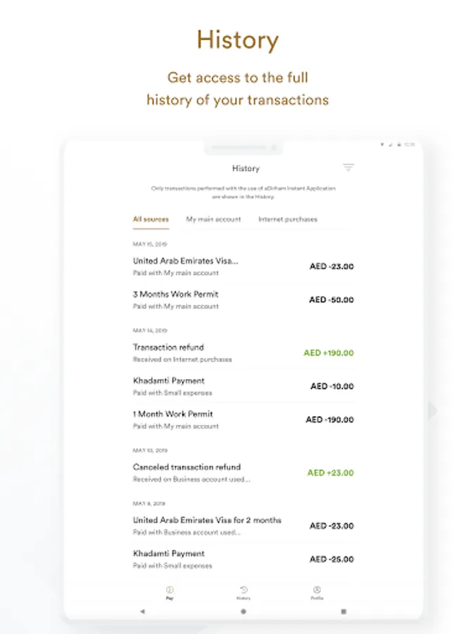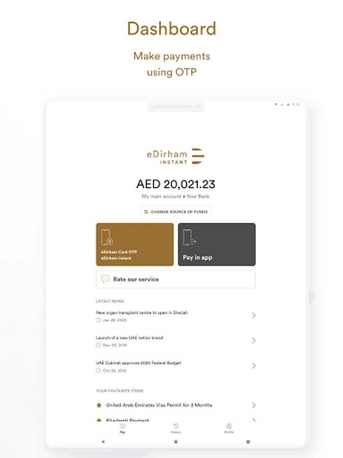 Make cardless and cashless payments via your mobile with eDirham Instant. Track your transactions and manage your spending.