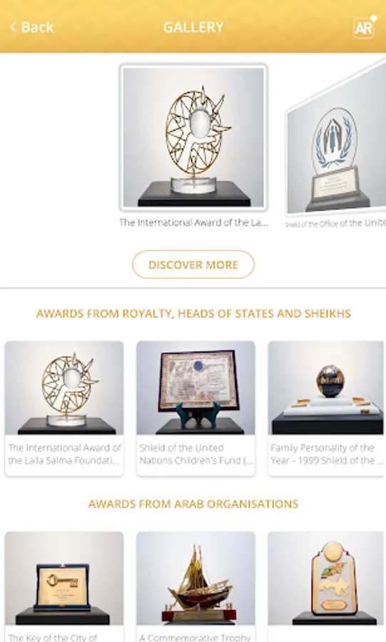 The application is available in three languages, allowing the user, through the use of augmented reality technology, to view data about the awards while touring the hall, and also provides a virtual tour service.