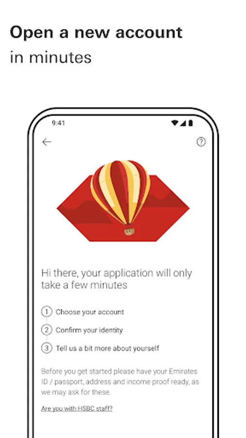Download the HSBC UAE app today to enjoy banking on the go! Already a customer? Log on with your existing banking details.