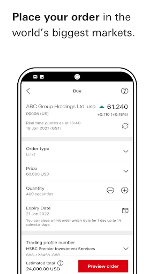 • ‘Equity Trading’ - Quickly and securely trade equities and exchange traded funds (ETFs) in the US, UK and HK markets.