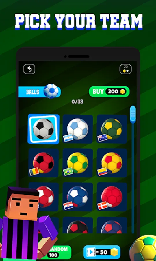 • Play in your favorite team jersey and soccer balls. Collect ‘em all!