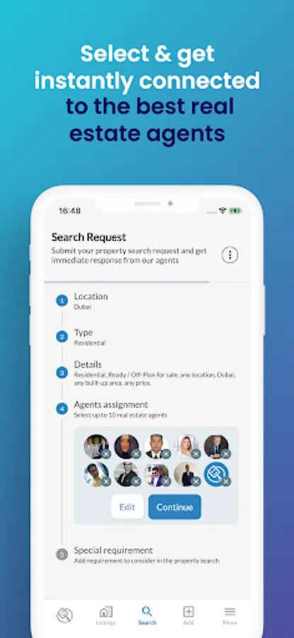 As a customer or non-Dubai agent, you have access to a network of connected Dubai agents for all your real-estate needs and you can give "assignments" to any agent of your choice: