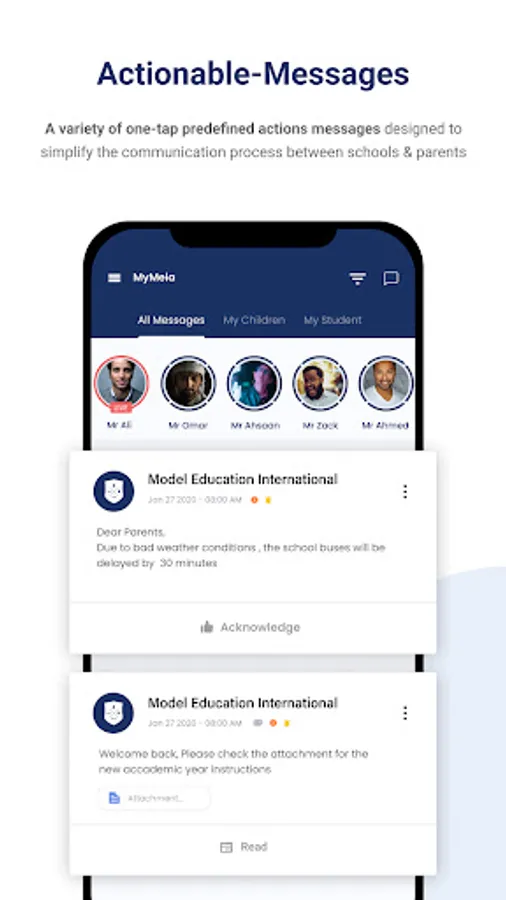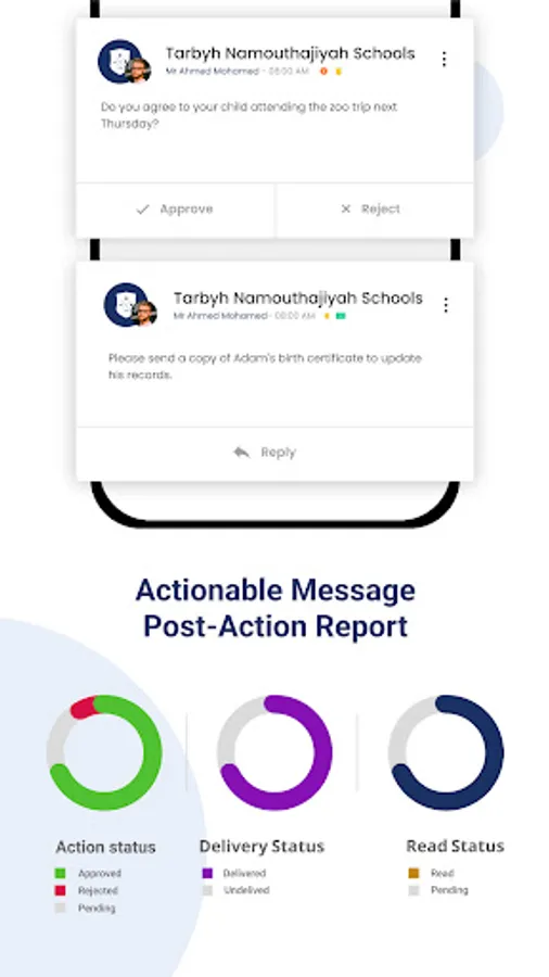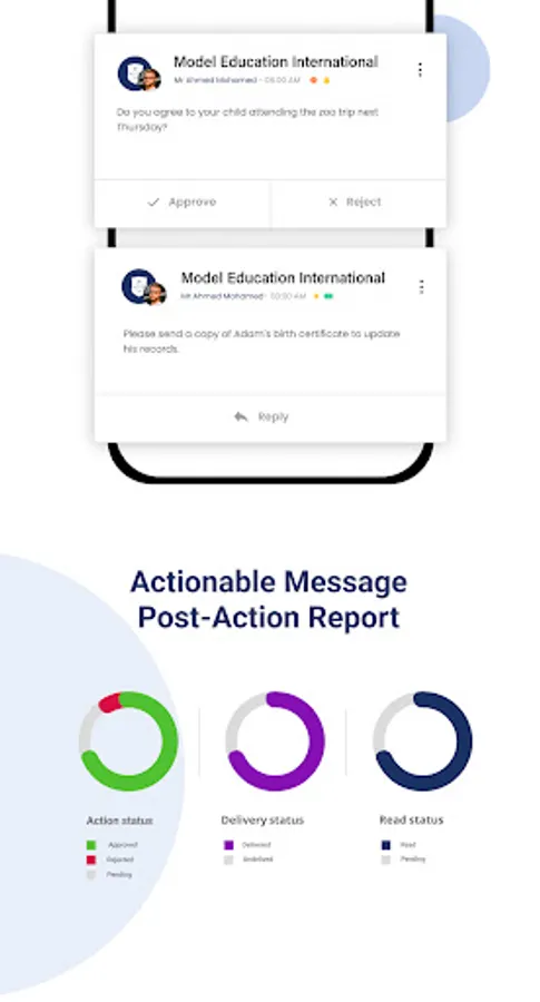 • Actionable interaction: Communicate with teachers and school admins and take action easily wherever you are