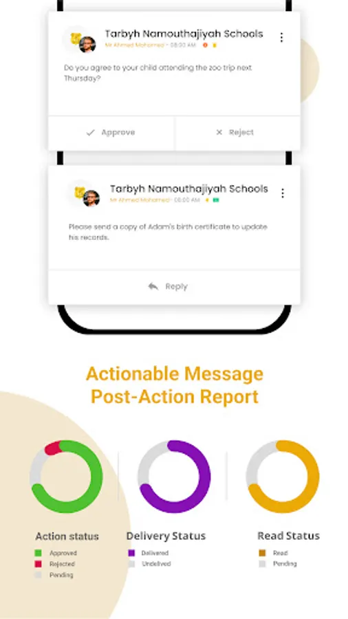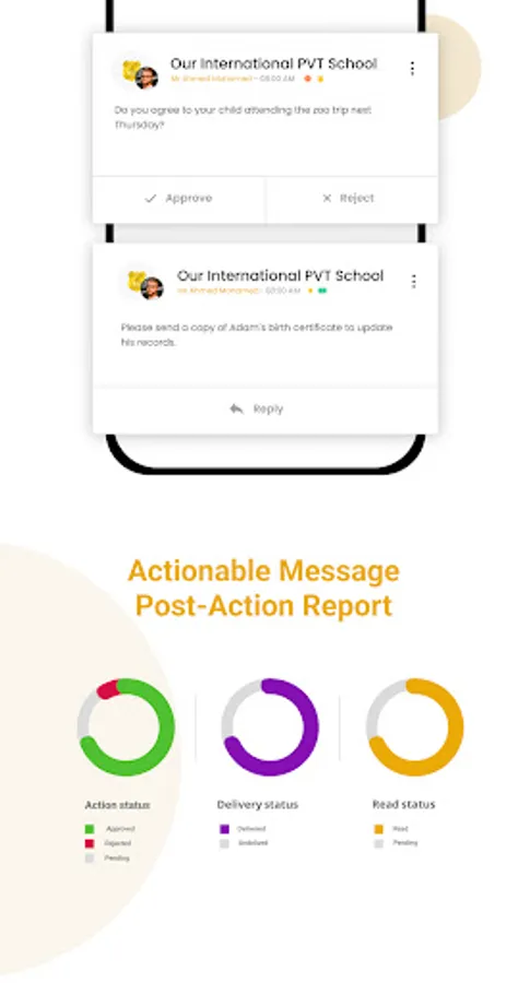 • Actionable interaction: Communicate with teachers and school admins and take action easily wherever you are