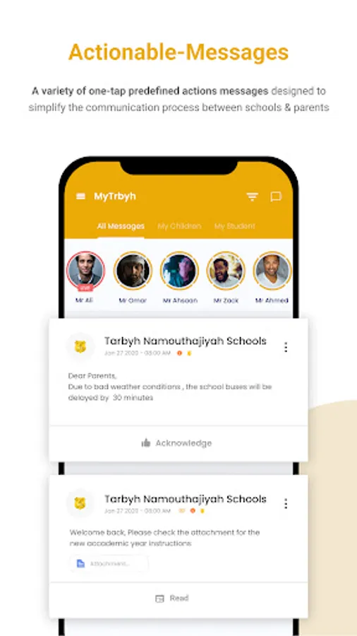 MyTrbyh enables school staff & teachers to send messages to parents and receive instant responses. Schools can send unlimited messages with unlimited characters effortlessly in a user-friendly manner.
