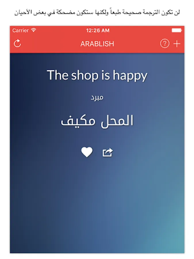 This application uses literal English vocabulary to translate known Arabic phrases