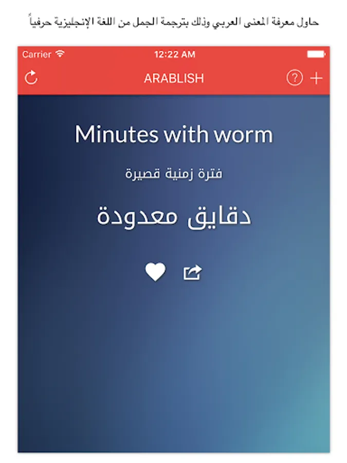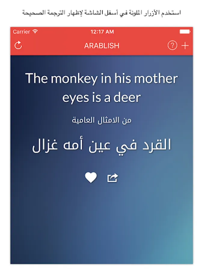 This application uses the vocabulary literal English translation of the well-known Arab phrases