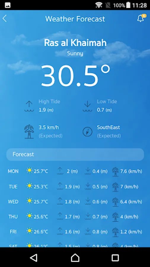 Make sure you download Estdama app, presented by the Environment Protection & Development Authority, to receive information about the weather and the sea status before going out. The app shows you a 7 day weather forecast.